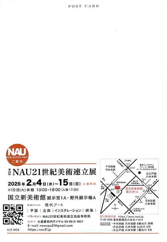 【日 時】 2026年2月4日(水)~15日(日) 10:00~18:00(入場17:30まで) 2月10日(火)休館 2月8日(日)13:00~ アーティストトーク