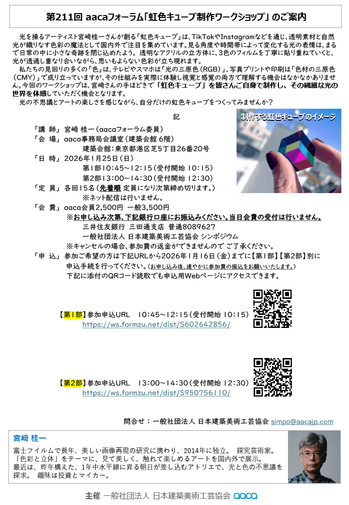 第211回aacaフォーラム「虹色キューブ制作ワークショップ」
